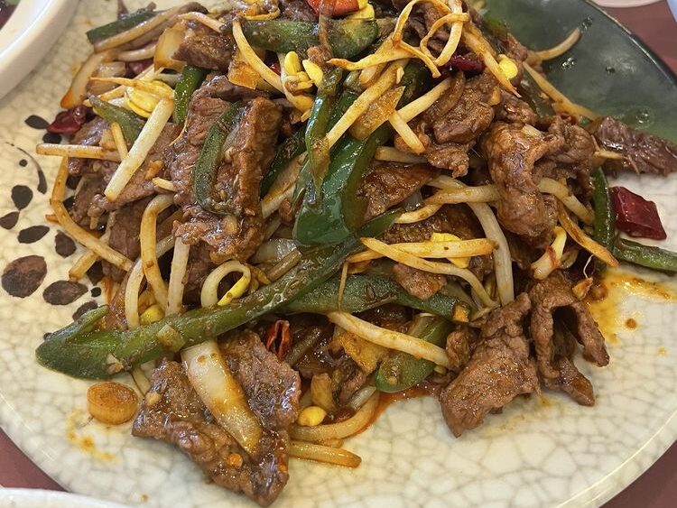 Tender slices of beef stir-fried with fragrant cumin seeds, dried chilies, garlic, and scallions, this dish delivers a smoky, spicy kick with every bite.
