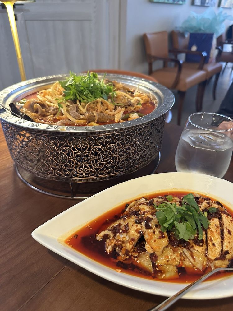 A signature Guizhou dish. Tender poached chicken is served cold and dressed in a sauce made with chili oil, garlic, and Sichuan peppercorns.